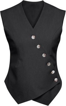 - Features: V neck blazer vests, sleeveless style allows for easy layering, asymmetric button front closure, fitted silhouette, classic solid color. A versatile addition to your wardrobe.